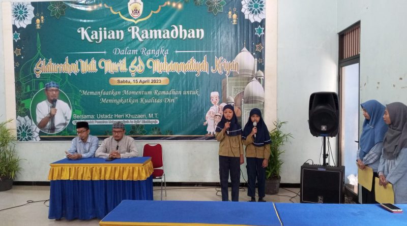 JEPARA- SD Muhammadiyah Kriyan mengadakan kajian Ramadan yang bertempat di aula SD Muhammadiyah Kriyan, Kalinyamatan Jepara. Sabtu (15/4/2023 M, 24