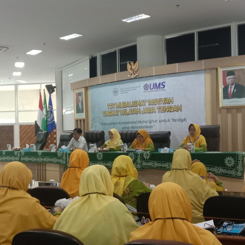 muhammadiyahjepara.or.id, JEPARA – Majelis Tabligh dan Ketarjihan (MTK) Pimpinan Wilayah Aisyiyah Jawa Tengah menggelar ToT Mubalighat Aisyiyah dan bertempat di Gedung Siti Walidah lantai 7 kompleks UMS. Acara yang berlangsung selama tiga hari berturut-turut itu, tanggal 16-18 Agustus 2024, dihadiri ratusan utusan dari masing-masing MTK Pimpinan Daerah Aisyiyah se-Jawa Tengah.
