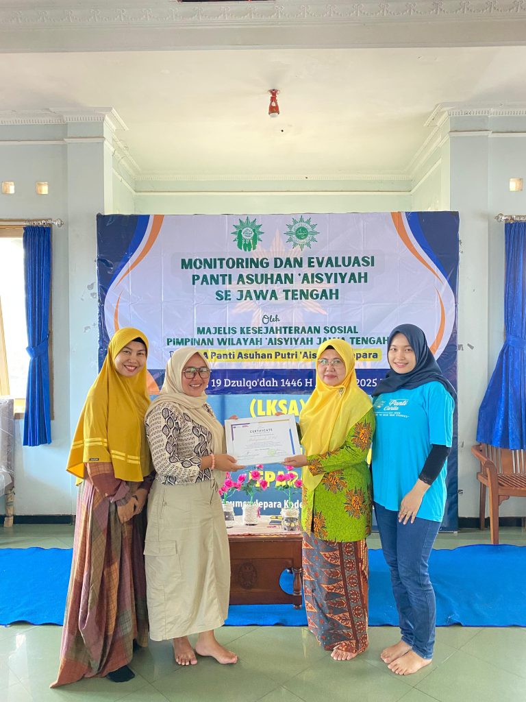 Kegiatan diakhiri dengan penyerahan sertifikat kepada narasumber Ibu Muhajannah, S.Pd., dari Panti Carita, yang diwakili kak Tika dan LKSA PAP `Aisyiyah Jepara yang diwakili oleh Ibu Khumaidah, SKM., M. Kes., sebagai Ketua Pengurus dan Ibu Noor Laila Ekasari, S.T. selalu sekretaris, serta makan bersama anak-anak dengan tim dan juga narasumber.