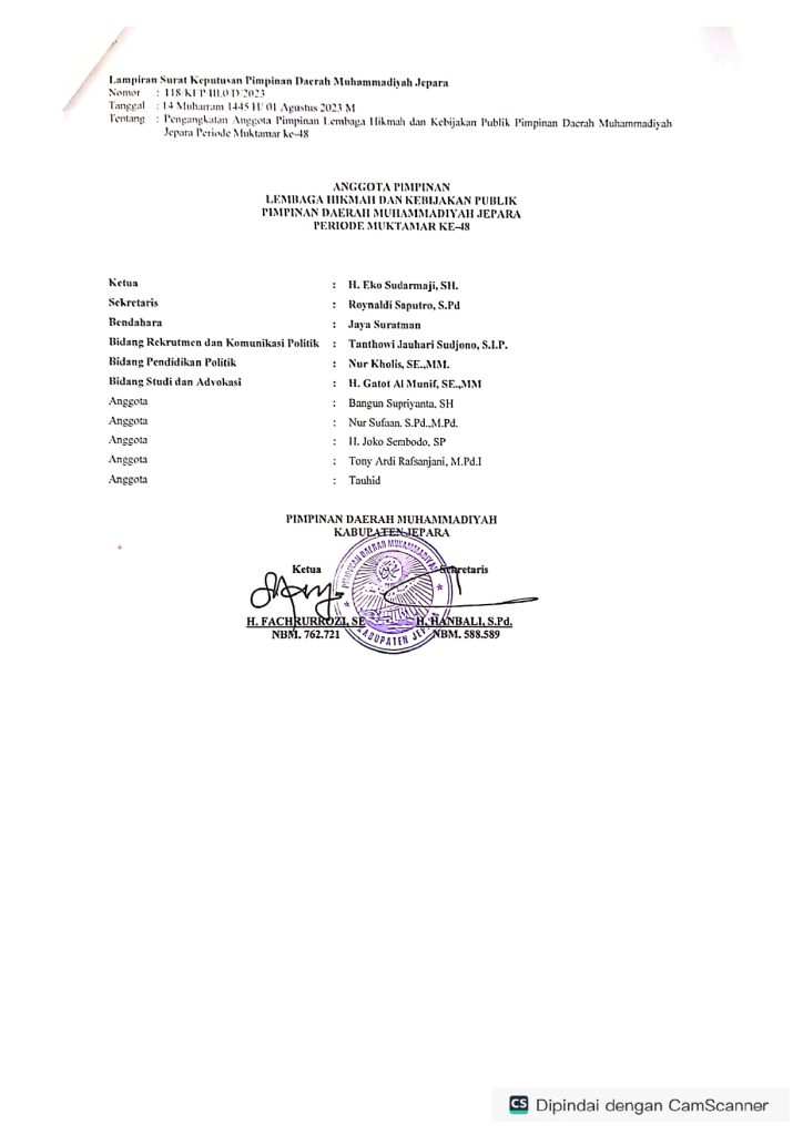 SUSUNAN LEMBAGA HIKMAH DAN KEBIJAKAN PUBLIK PIMPINAN DAERAH MUHAMMADIYAH JEPARA PERIODE MUKTAMAR KE 48