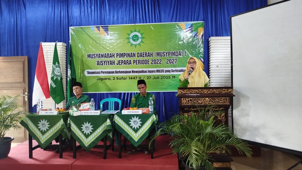 JEPARA. (JEPARAMU.OR.ID). Pimpinan Daerah ‘Aisyiyah (PDA) Jepara menggelar Musyawarah Pimpinan Daerah (Musypimda) I periode 2022–2027 dengan penuh semangat dan kekhidmatan, Ahad (27/7/2025) di TPQ Al-Furqon, Desa Sekuro, Kecamatan Mlonggo, Kabupaten Jepara. Acara pembukaan dimulai tepat pukul 08.00 WIB dengan pembacaan basmalah oleh Sulasmi, disusul pembacaan ayat suci Al-Qur’an oleh perwakilan Nasyiatul Aisyiyah. Hadirin kemudian menyanyikan lagu Indonesia Raya, Mars Muhammadiyah, dan Mars Aisyiyah secara bersama-sama.