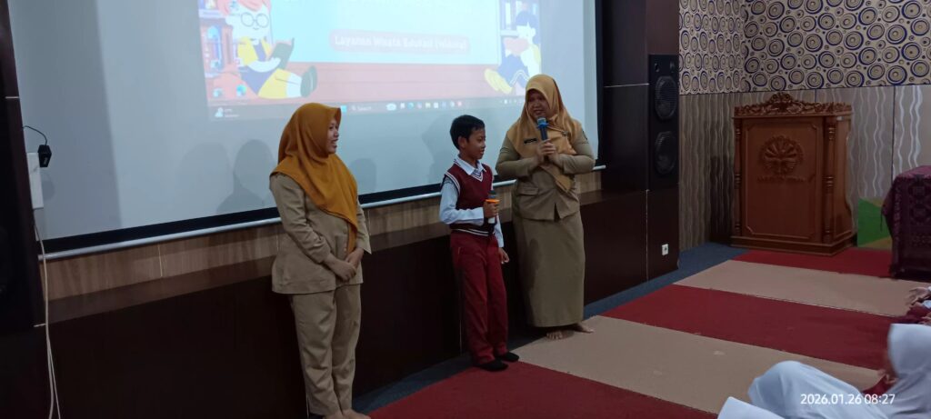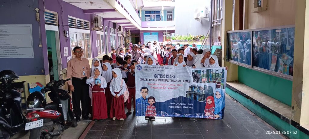 Jepara_ Antusias murid SD Muhammadiyah Jepara saat mengikuti Outing Class di Perpustakaan Daerah Kab. Jepara pada Senin, 26 Januari 2026.