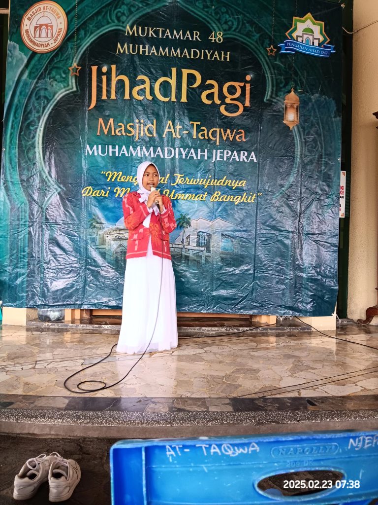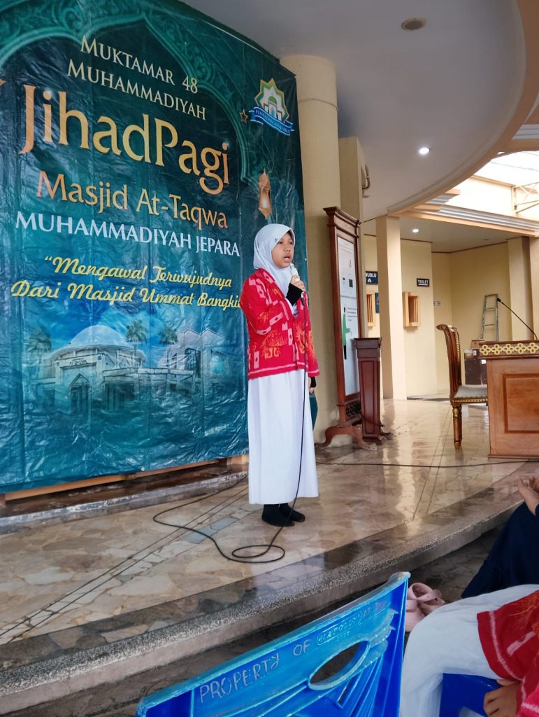 Ahad, 23 Februari 2025 siswa SD Muhammadiyah Jepara bertugas sebagai MC dan Kalam Ilahi.