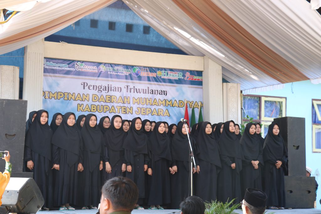 Pra acara dimeriahkan dengan penampilan drum band dari SD Muhammadiyah Bangsri serta pembacaan puisi bertema “Free Palestine,” yang menggugah semangat kepedulian jamaah terhadap isu-isu kemanusiaan global. LKSA dan Ponpes Muhammadiyah QUBA juga ikut berpartisipasi, diiringi lantunan merdu dari paduan suara Aisyiyah Bangsri.