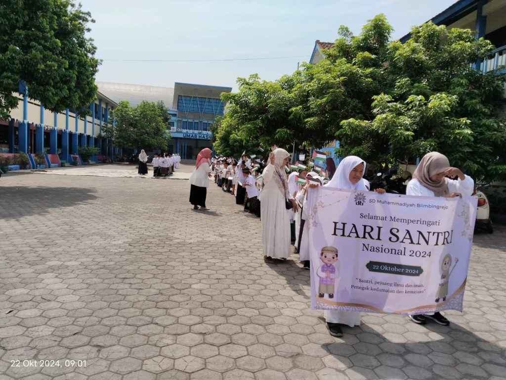 JEPARA (JEPARAMU.OR.ID) – Peringati Hari Santri Nasional 2024, SD Muhammadiyah Blimbingrejo , Nalumsari Jepara mengadakan murajaah Juz 30 dan jalan sehat pada hari Selasa ( 22/10/2024 M, 19 Rabiul Akhir 1446 H)