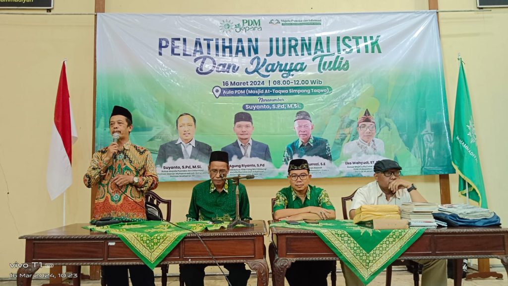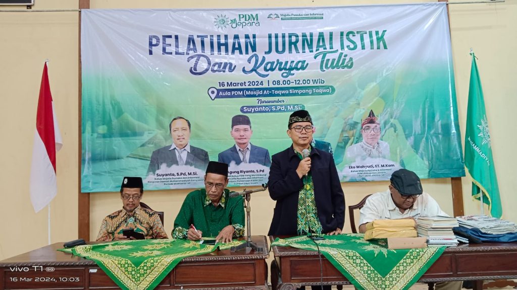 muhammadiyahjepara.or.id 16 Maret 2024. Pelatihan Jurnalistik dan Karya Tulis Majlis Pustaka dan Informasi PDM Jepara di Aula PDM Jepara. Pada hari Sabtu, 16 Maret 2024 pukul 08.00 – Selesai