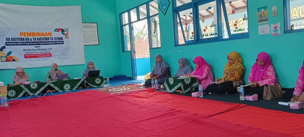 JEPARA (muhammadiyahjepara.or.id) – KB Aisyiyah 08 Jepara dan TK Aisyiyah 13 Jepara mendapatkan Pembinaan Penguatan SDM (Sumber Daya Manusia) dan Pengembangan Program Keunggulan Sekolah dari Devisi SDM Majlis Pauddasmen PWA Jawa Tengah. Kegiatan ini dilaksanakan di Aula KB & TK Aisyiyah 13 Jepara, yang beralamat di Jl.Kromodiwiryo Rt 15/Rw 3 Purwogondo Kalinyamatan Jepara pada hari Rabu, 25 September 2024 bertepatan 22 Rabiul Awwaln1446 H.
